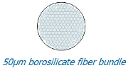 The high core to cladding ratio makes borosilicate fiber ideal for tight packing into bundles, as seen to the right. Bundles can contain hundreds to thousands of single fibers, maximizing light collection and transmission, and offering valuable redundancy in case of fiber breakage.