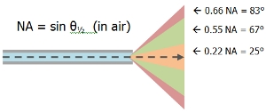 We have 35um and 50um diameter fiber available, with numerical apertures of 0.55 and 0.66.